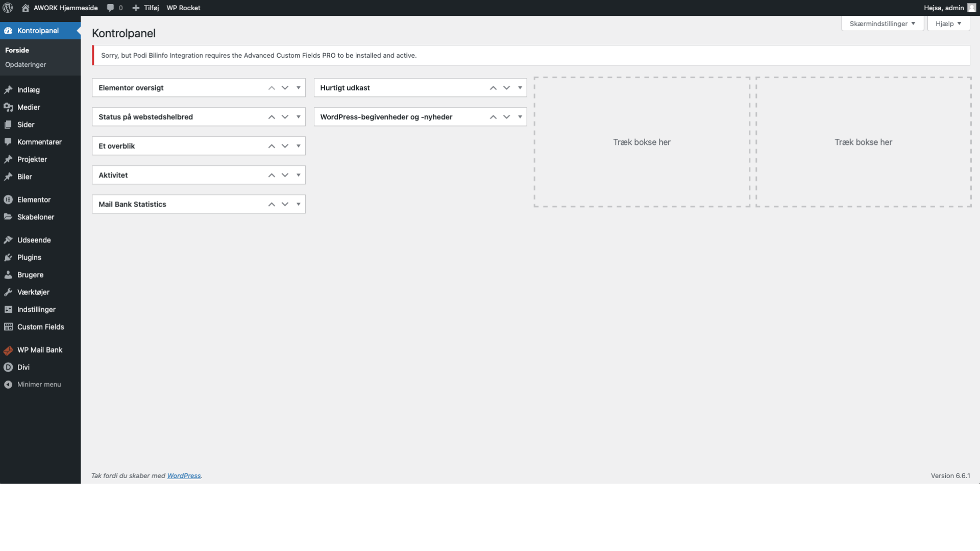 Log ind på dit kontrolpanel (har du glemt dine loginoplysninger, så kan du skrive til support@awork.dk og bede om nyt).