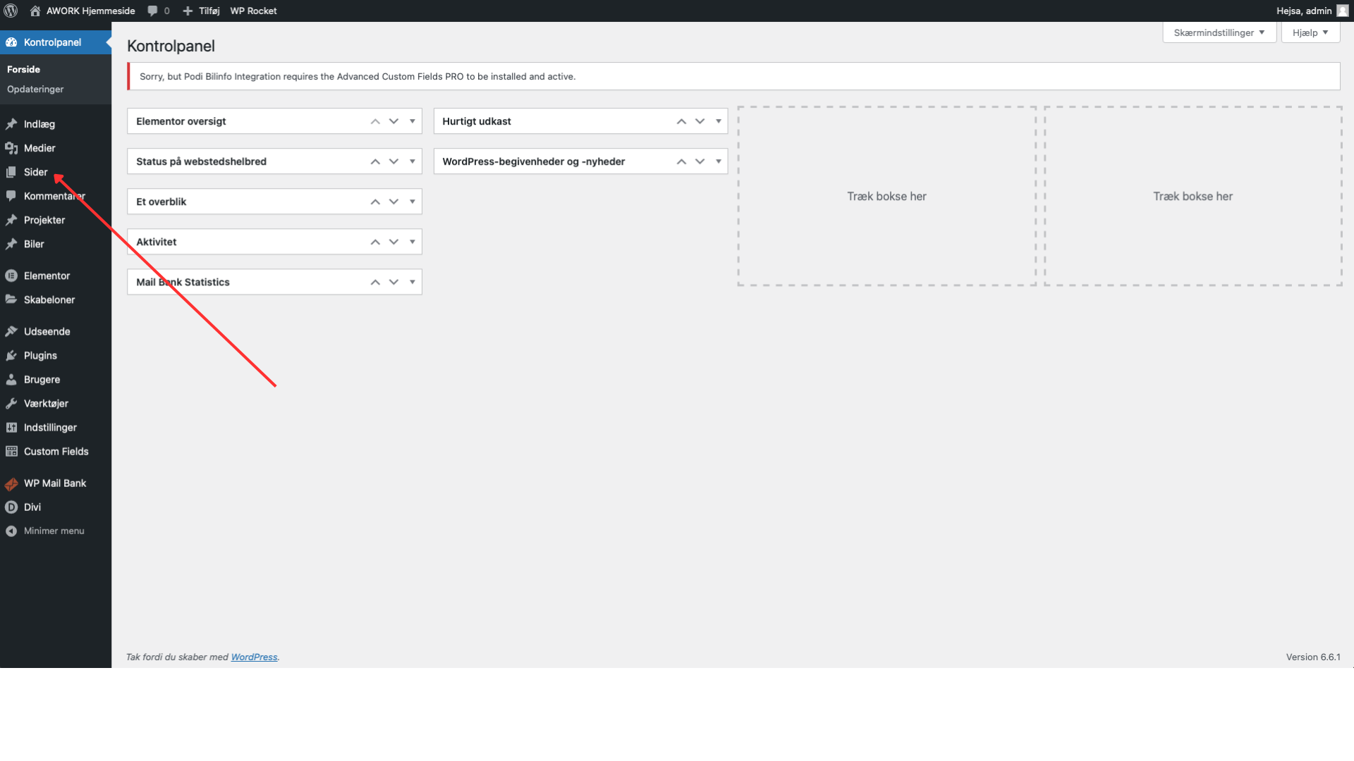 Trin 1 Log ind på dit kontrolpanel (har du glemt dine loginoplysninger, så kan du skrive til support@awork.dk og bede om nyt). Trin 2 Klik på “Sider” i venstre sidebar. Trin 3 Klik på knappen “Tilføj ny” som er øverst oppe og i venstre sidebar. Trin ...