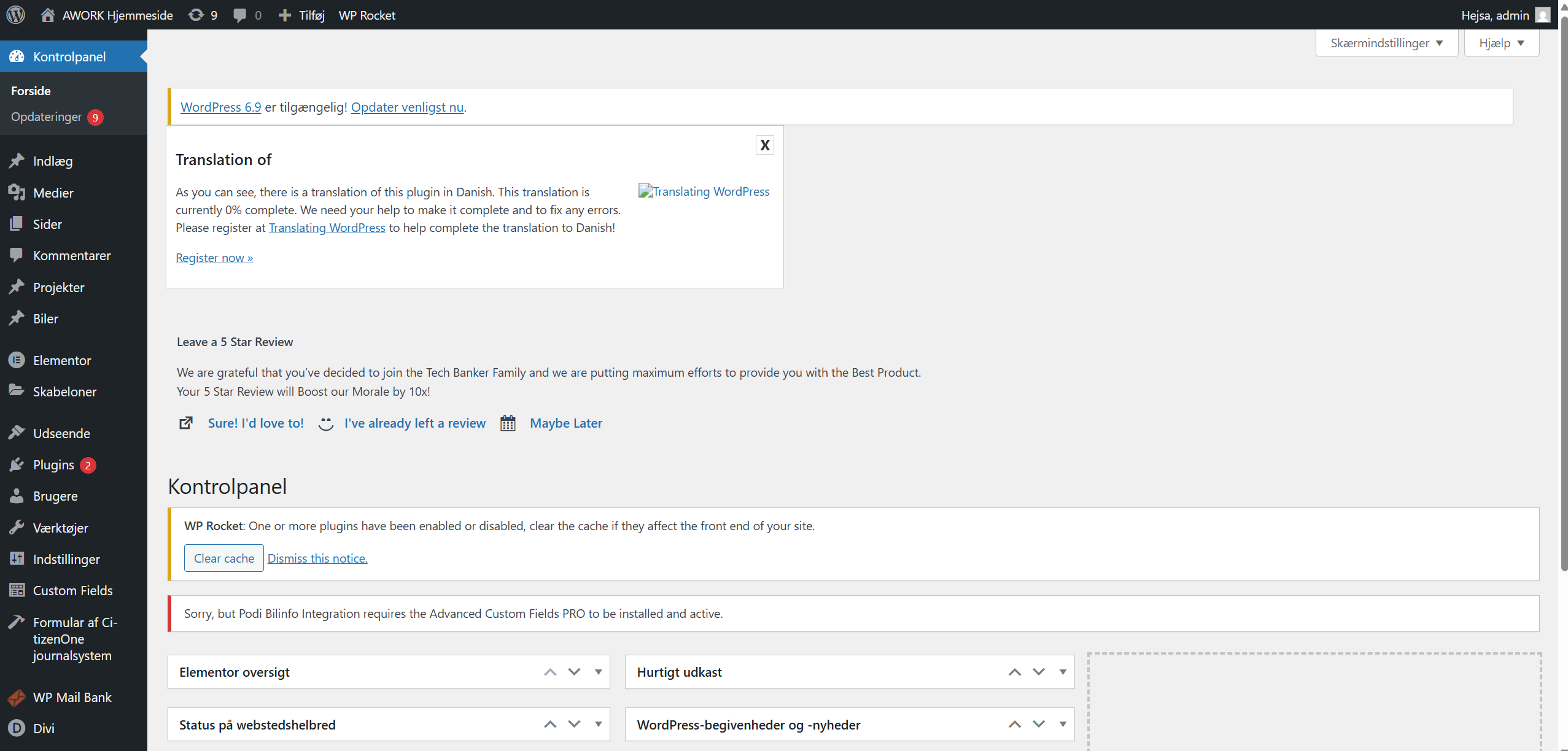 Log ind på dit kontrolpanel (hvis du har glemt dine loginoplysninger, kan du skrive til support@awork.dk og anmode om nye).