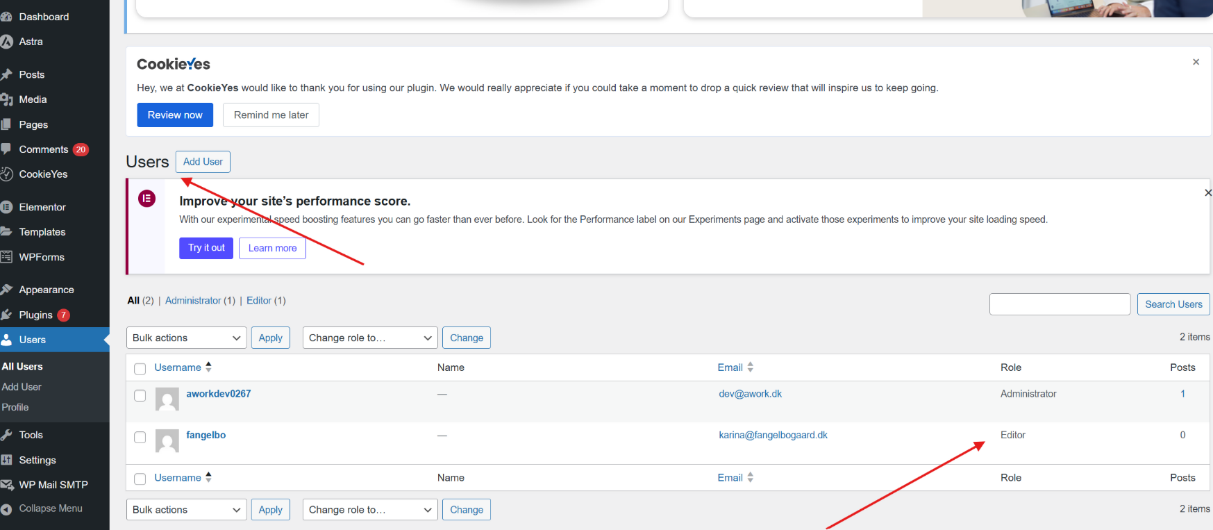 Gå til feltet "Brugere" og tjek klientens rolle.