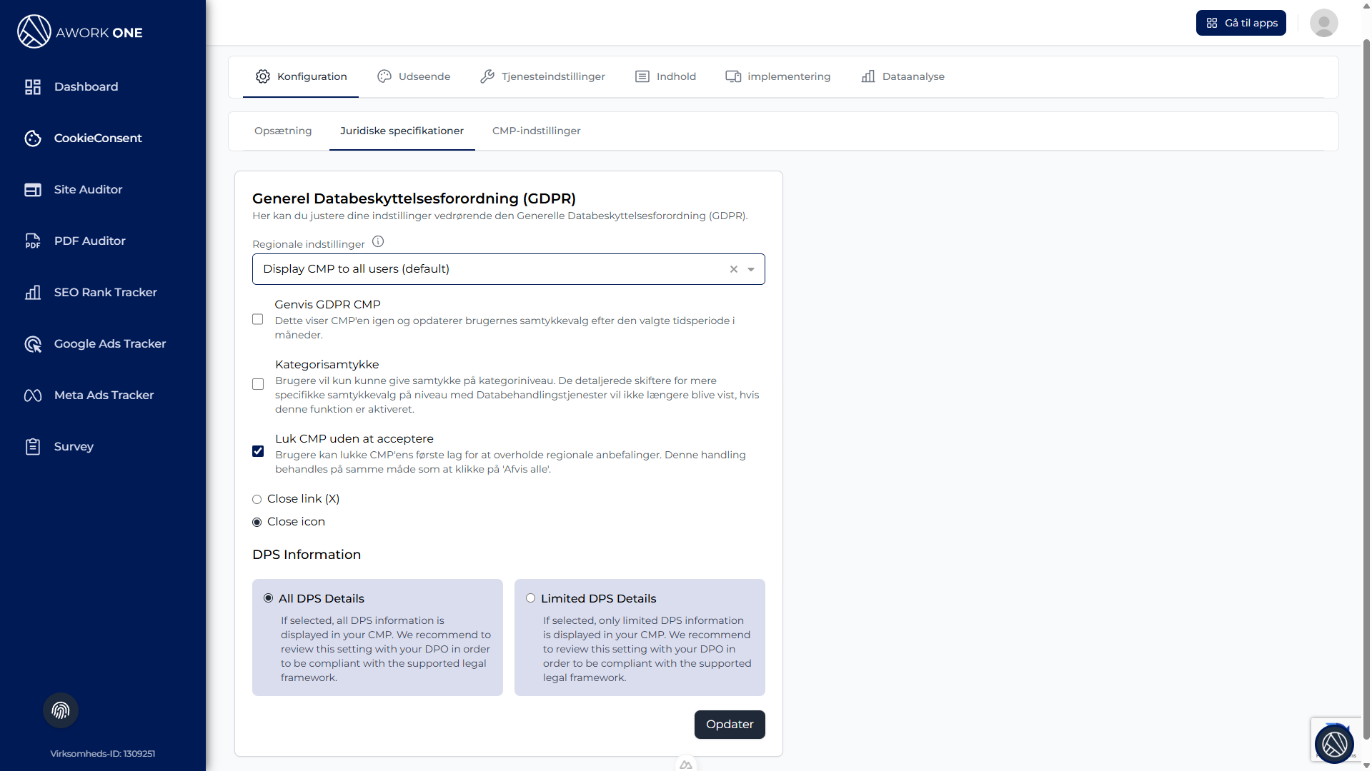 Alle DPS-oplysninger (anbefalet) – Viser fulde oplysninger og opfylder de strengeste juridiske krav.