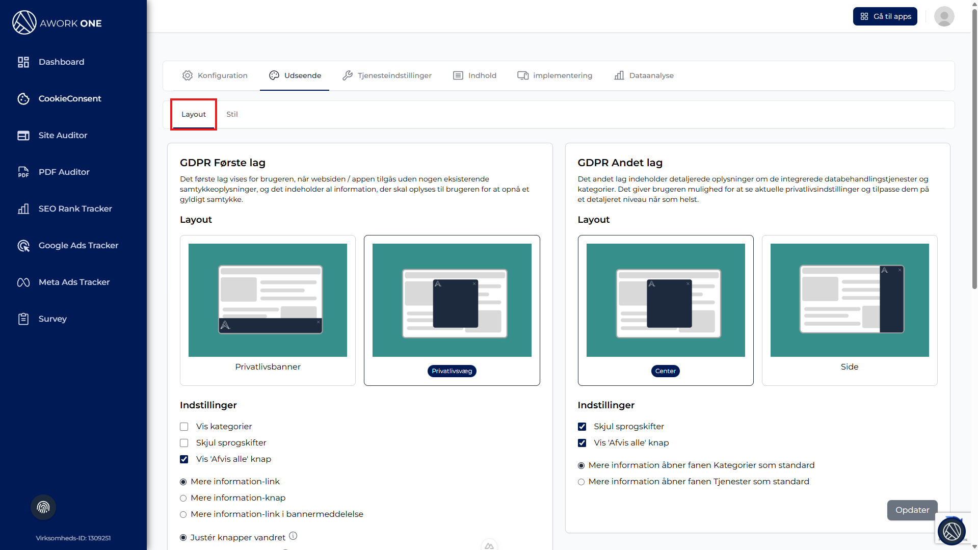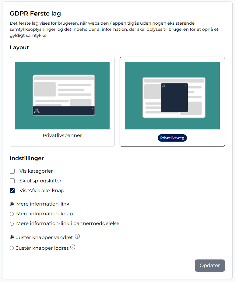 Det første lag er det samtykkebanner, som brugerne ser, når de besøger websitet første gang.