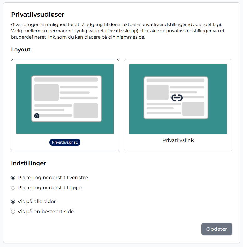 Privatlivslink – Et link, som manuelt kan placeres på websitet.
